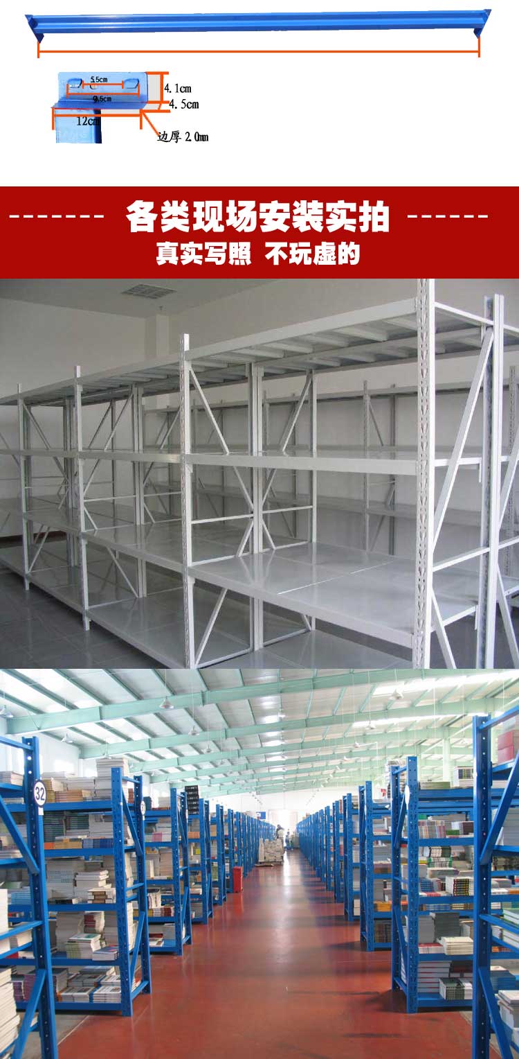 輕型貨架:立柱、橫梁冷軋成型,采用專業(yè)柱卡掛接連接方式,不用任何螺絲便可安裝,安裝方便快捷。層高小可50mm節(jié)距自由調(diào)節(jié),層板可選木層板或鋼層板。先進(jìn)靜電噴涂利于保養(yǎng)兼顧美觀。自重輕,載重大,經(jīng)濟(jì)實(shí)用。承重100-500KG每層,適合存放各類物品。